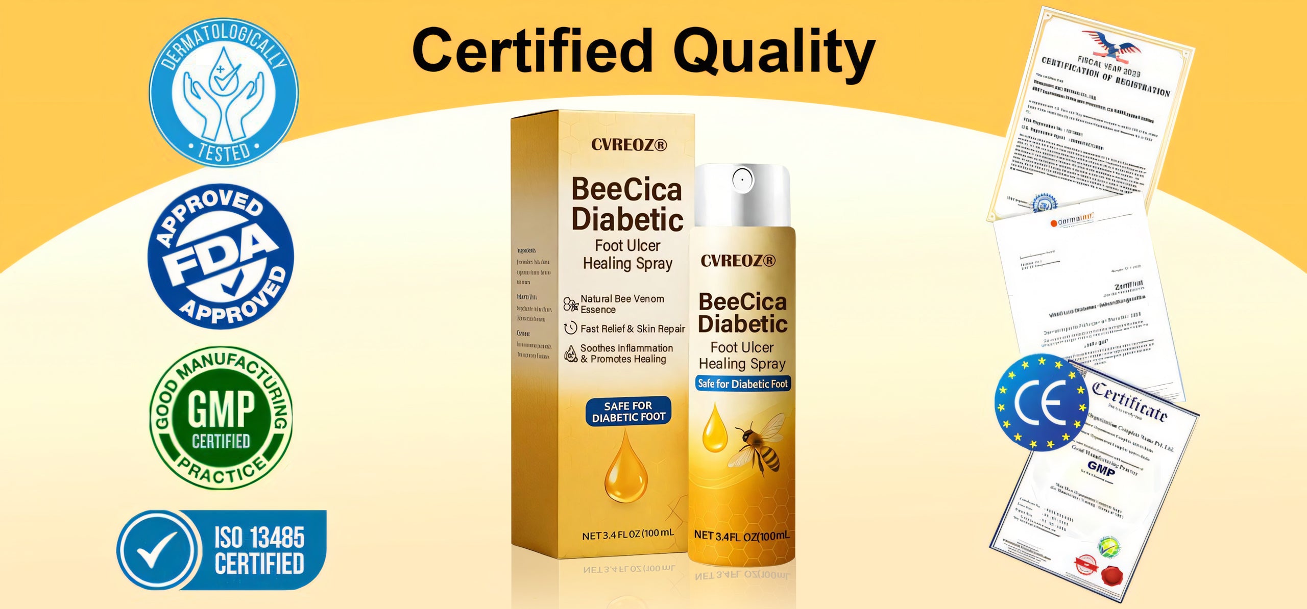 Why Choose CVREOZ® DiaCure Bee Venom & Centella Diabetic Foot Ulcer Spray?