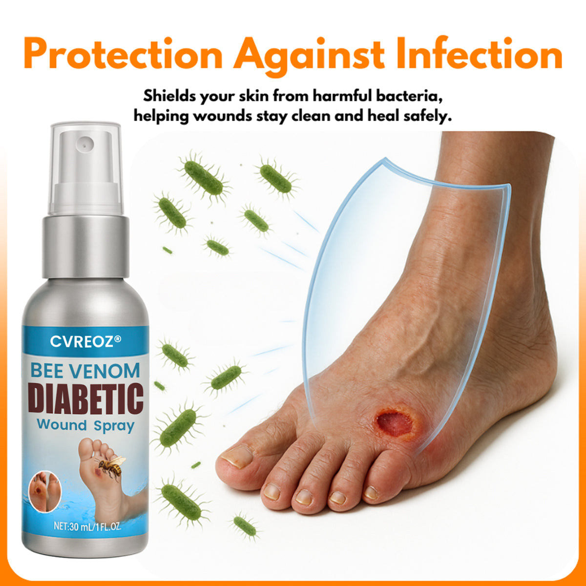 CVREOZÂź Bee Venom Diabetic Wound Spray is your go-to solution for revitalized, healthier feet â safely, effectively, and naturally. Formulated with a powerful fusion of bee venom, propolis, and herbal botanicals, this clinically backed treatment helps accelerate healing, reduce inflammation, and improve circulation.