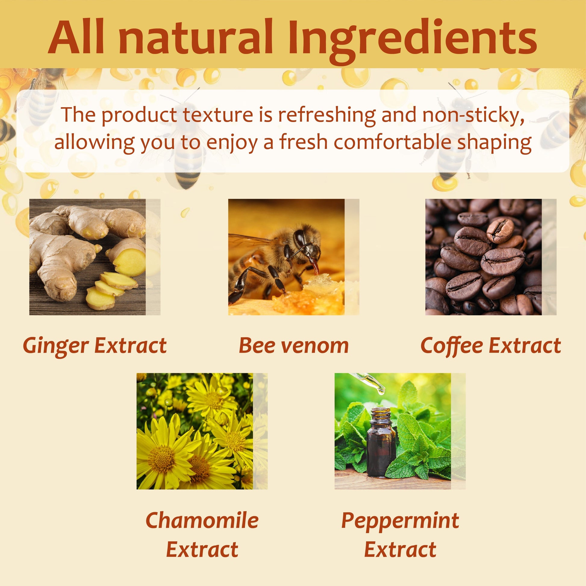 Bee Venom: Bee venom enhances energy consumption and promotes a slimmer physique by stimulating circulation, aiding in the breakdown of fats and improving skin elasticity and firmness.
