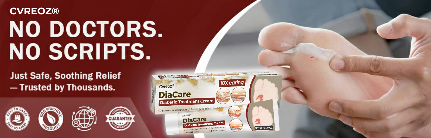Formulated by skincare experts,Cvreoz® DiaCare Diabetic Treatment Creamhelps diabetic skin recover faster fromslow-healing wounds, dryness, cracks, and irritation. Its natural healing complexsoothes sensitivityandsupports healthy skin renewal— gentle, safe, and effective for daily use