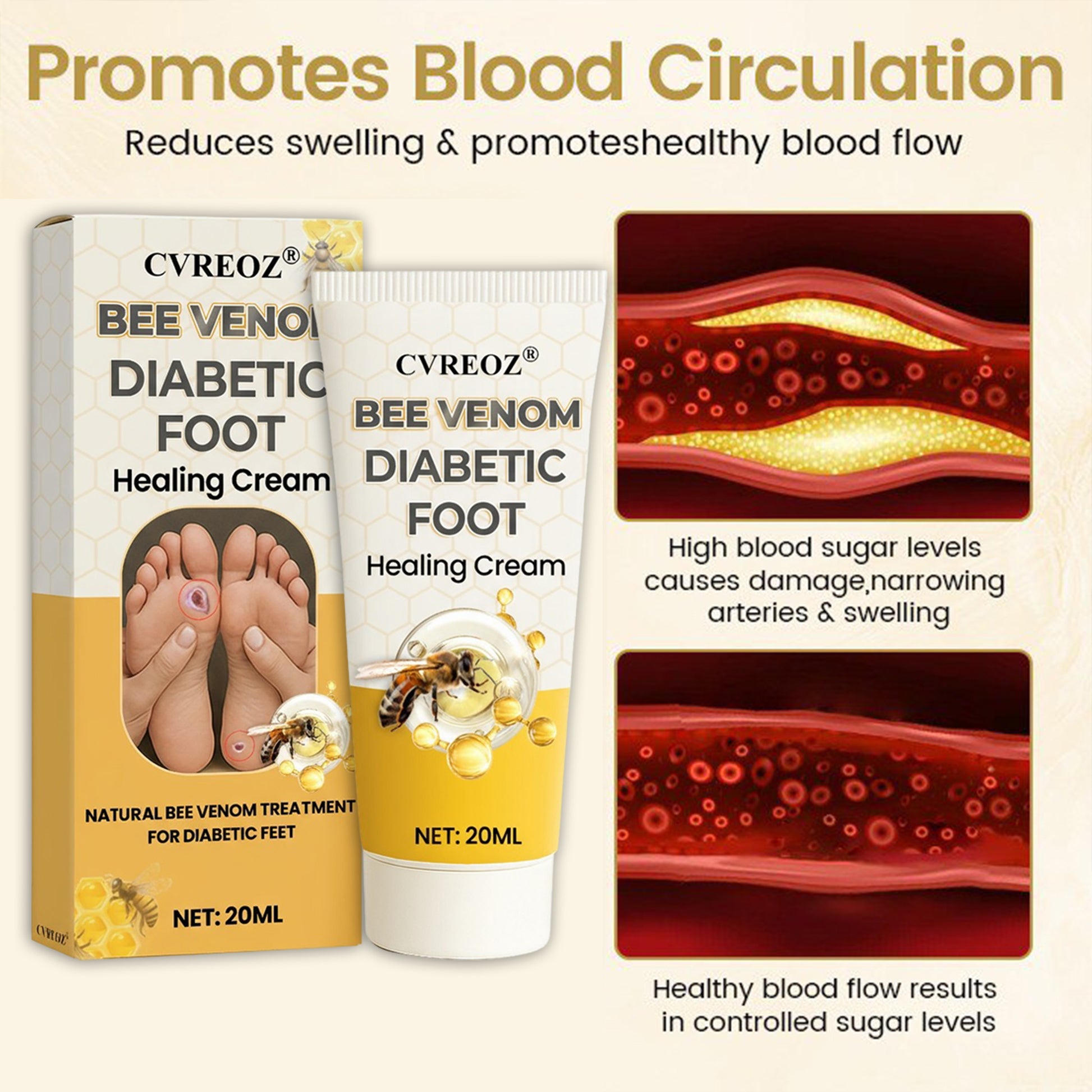 Don’t wait for recovery — choose CVREOZ® Bee Venom Diabetic Foot Healing Cream today and heal faster, safer, and better.