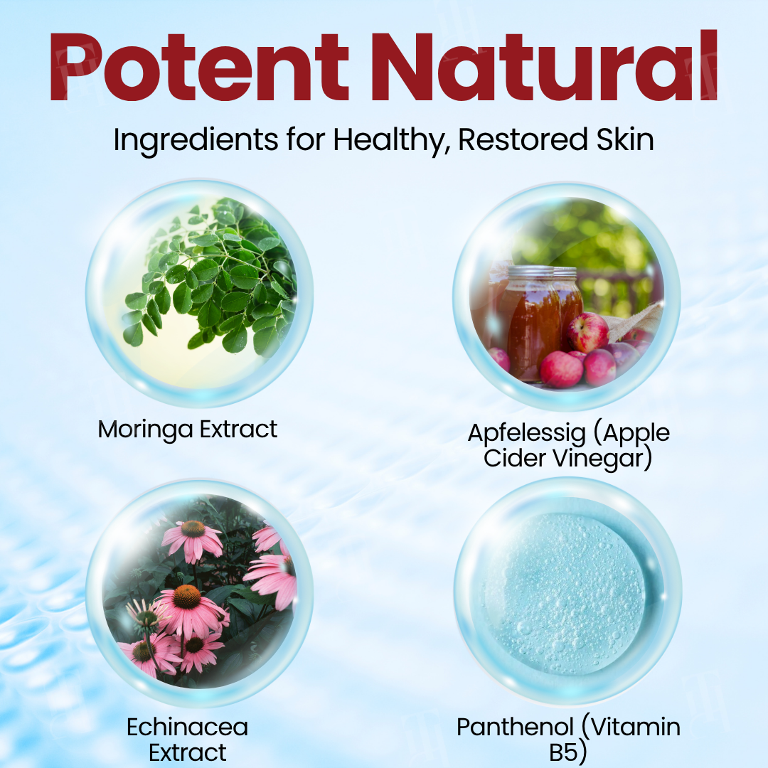 🛡️Reduces Inflammation and Provides Protection: Panthenol (Vitamin B5) is included to moisturize and promote skin regeneration, working alongside Moringa and apple cider vinegar to minimize inflammation and offer antimicrobial protection. This combination creates an optimal healing environment, allowing wounds to recover quickly and efficiently.