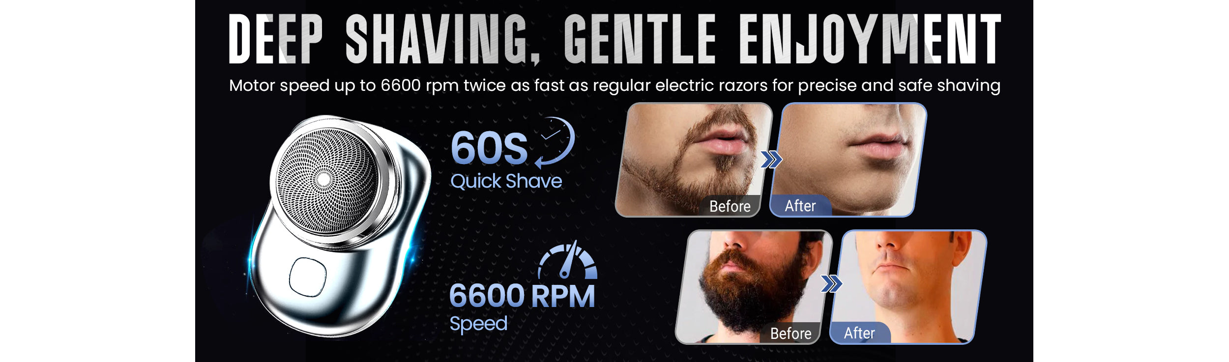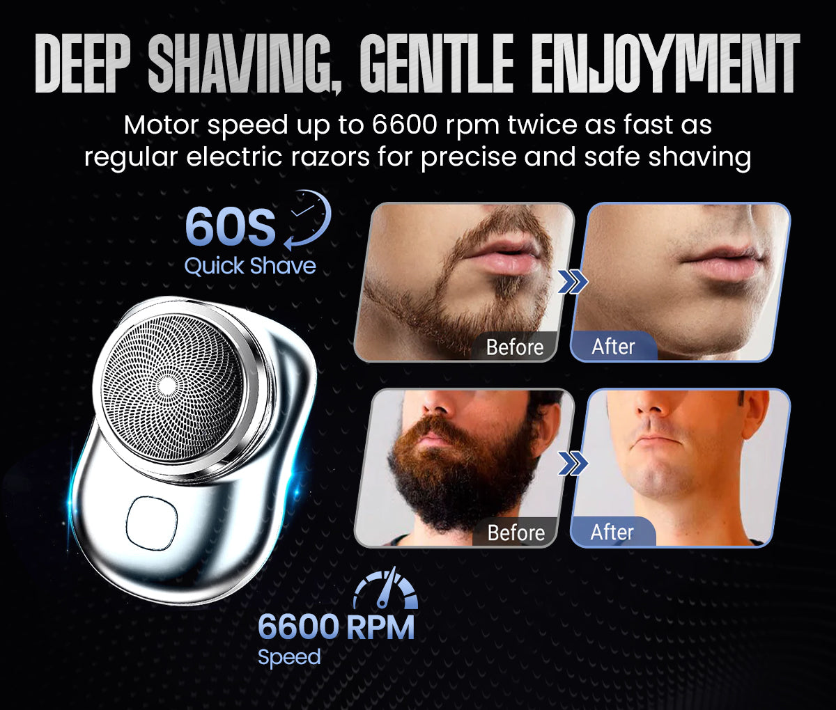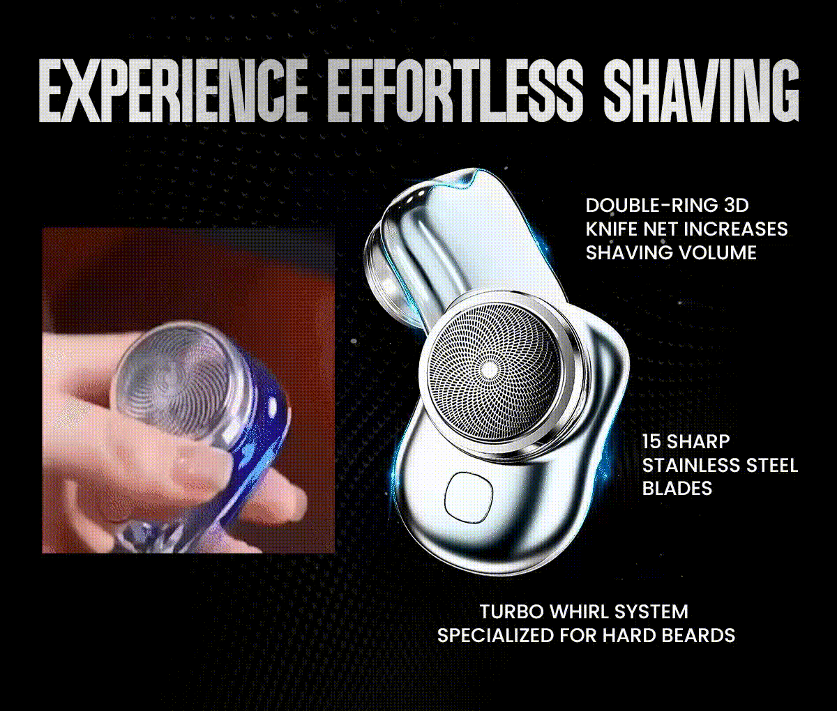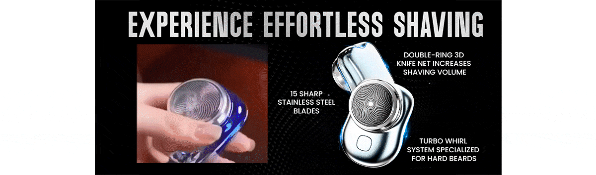 Equipped with a 15-blade stainless steel turbo whirl system and 0.1mm thin foil, MINI-SHAVE delivers a smooth, skin-close shave, removing even the toughest hairs from the root with ease.